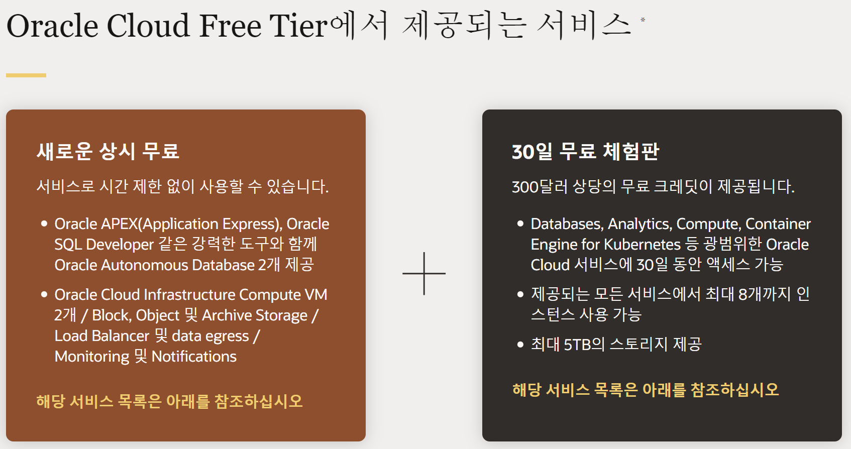 OCI의 경우 상시 무료 Plan이 있다.