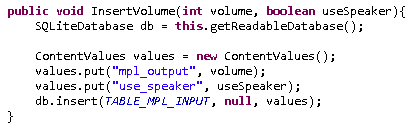 위 소스는 Android에서 제공하는 ContentValues를 이용하여 DBMS에 INSERT 질의를 하는 방법입니다.