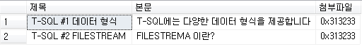 T-SQL은 파일을 저장할 수 있는 VARBINARY 데이터 형식을 지원합니다. 이제 게시판의 첨부 파일을 VARBINARY 데이터 형식을 사용해 저장해 보겠습니다.
